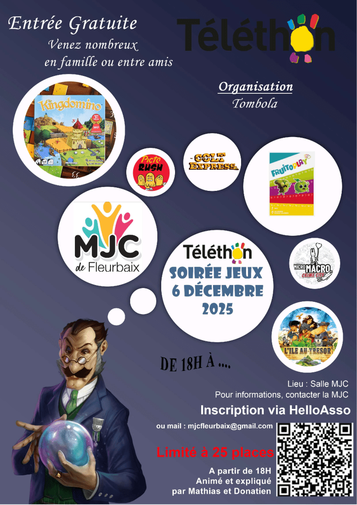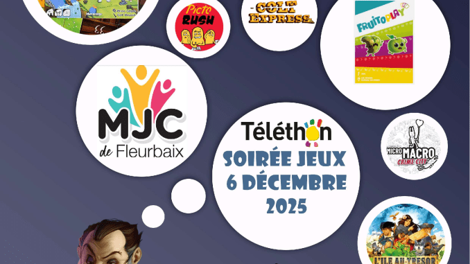 Le samedi 6 décembre 2025 à la MJC de Fleurbaix, on sort les dés, les cartes et la bonne humeur pour une soirée ludique au profit du Téléthon 🌟
